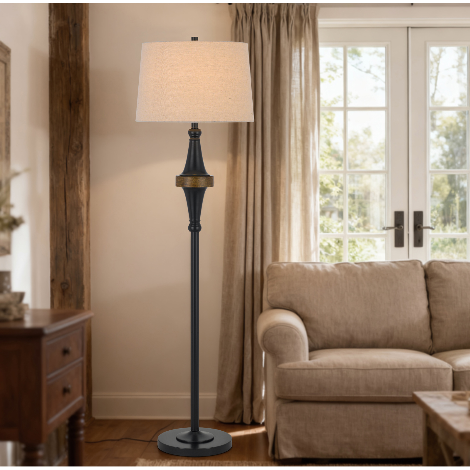 Elevate your space with this stunning floor lamp. Its sleek dark bronze finish and classic burlap shade bring timeless elegance to any room. A perfect blend of traditional design and modern appeal.