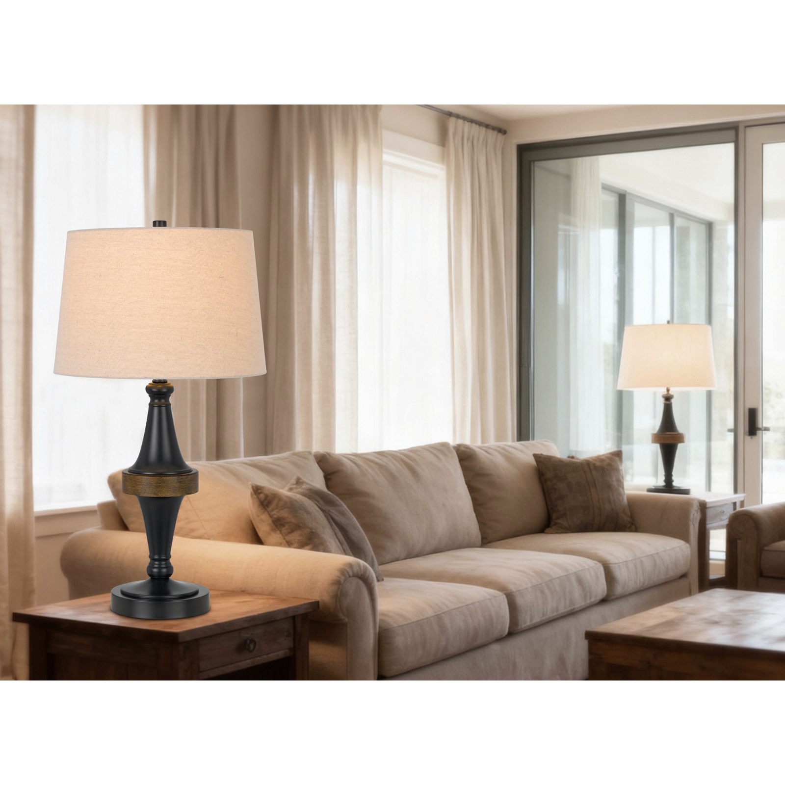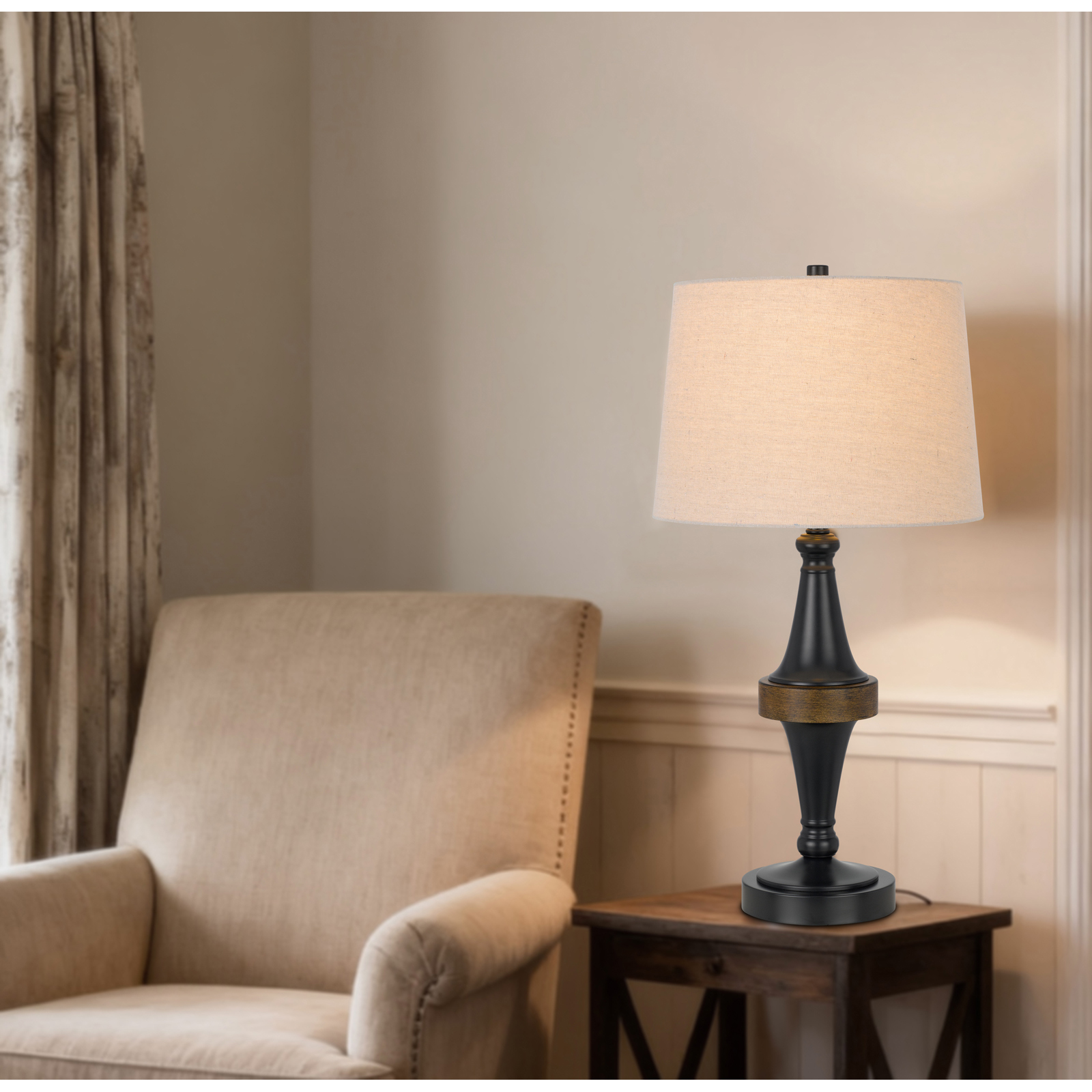 Elevate your space with this stunning table lamp. Its sleek dark bronze finish and classic burlap shade bring timeless elegance to any room. A perfect blend of traditional design and modern appeal.