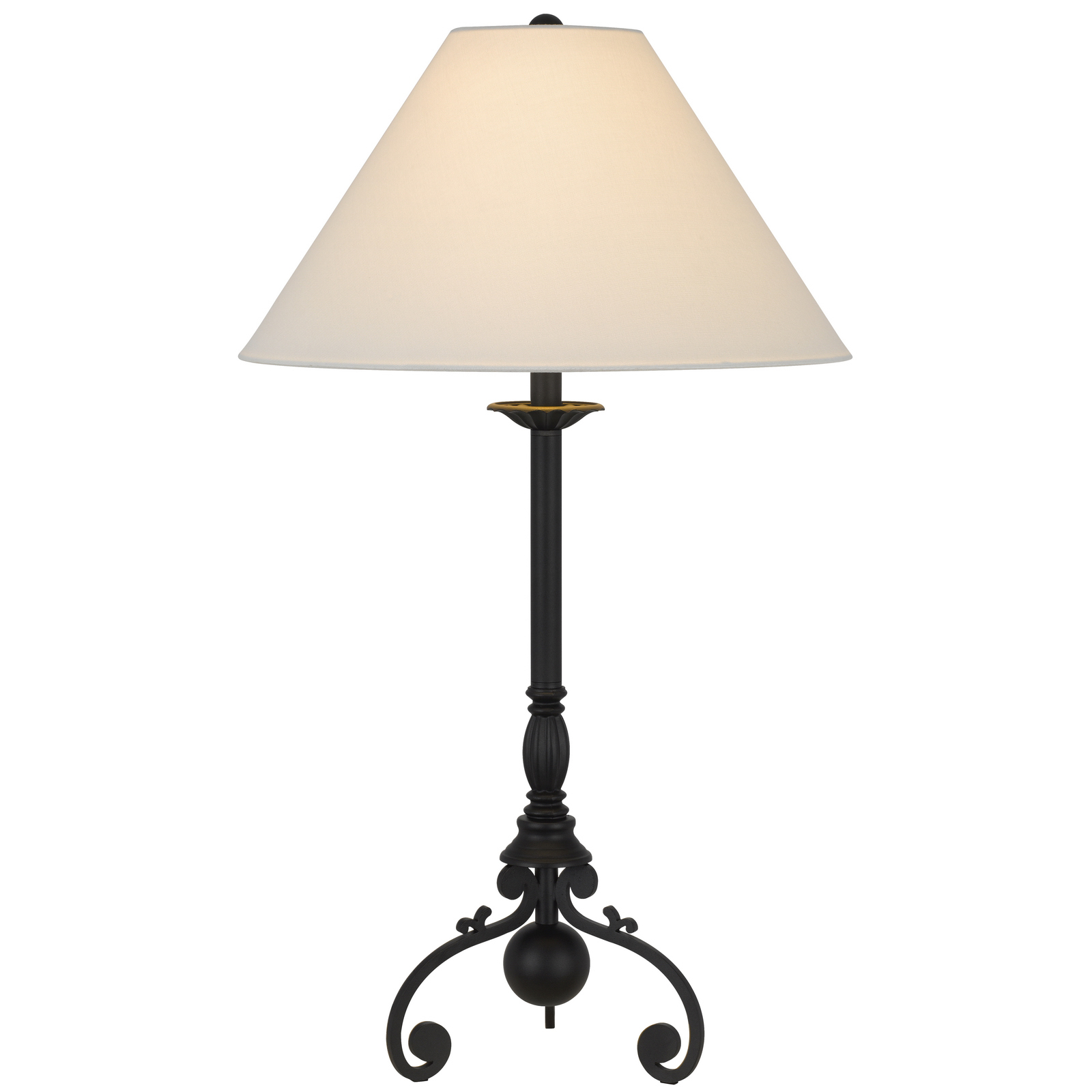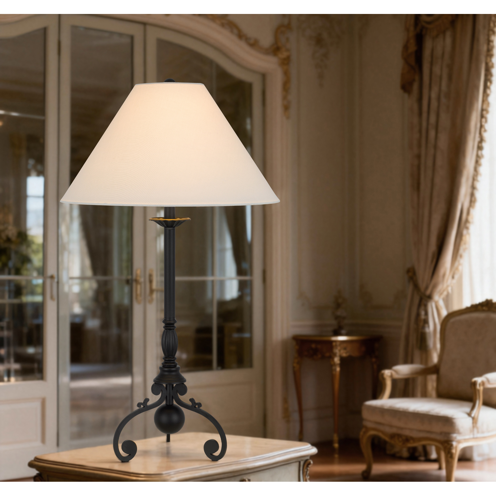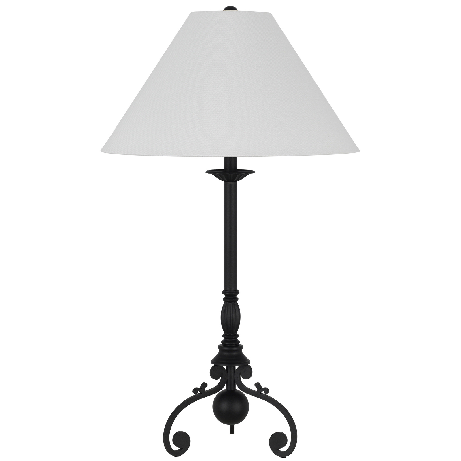Add timeless elegance with this black table lamp and white linen shade. Dual pull chains provide adjustable lighting. This sturdy, art deco-inspired piece is a perfect blend of style and function for any room.