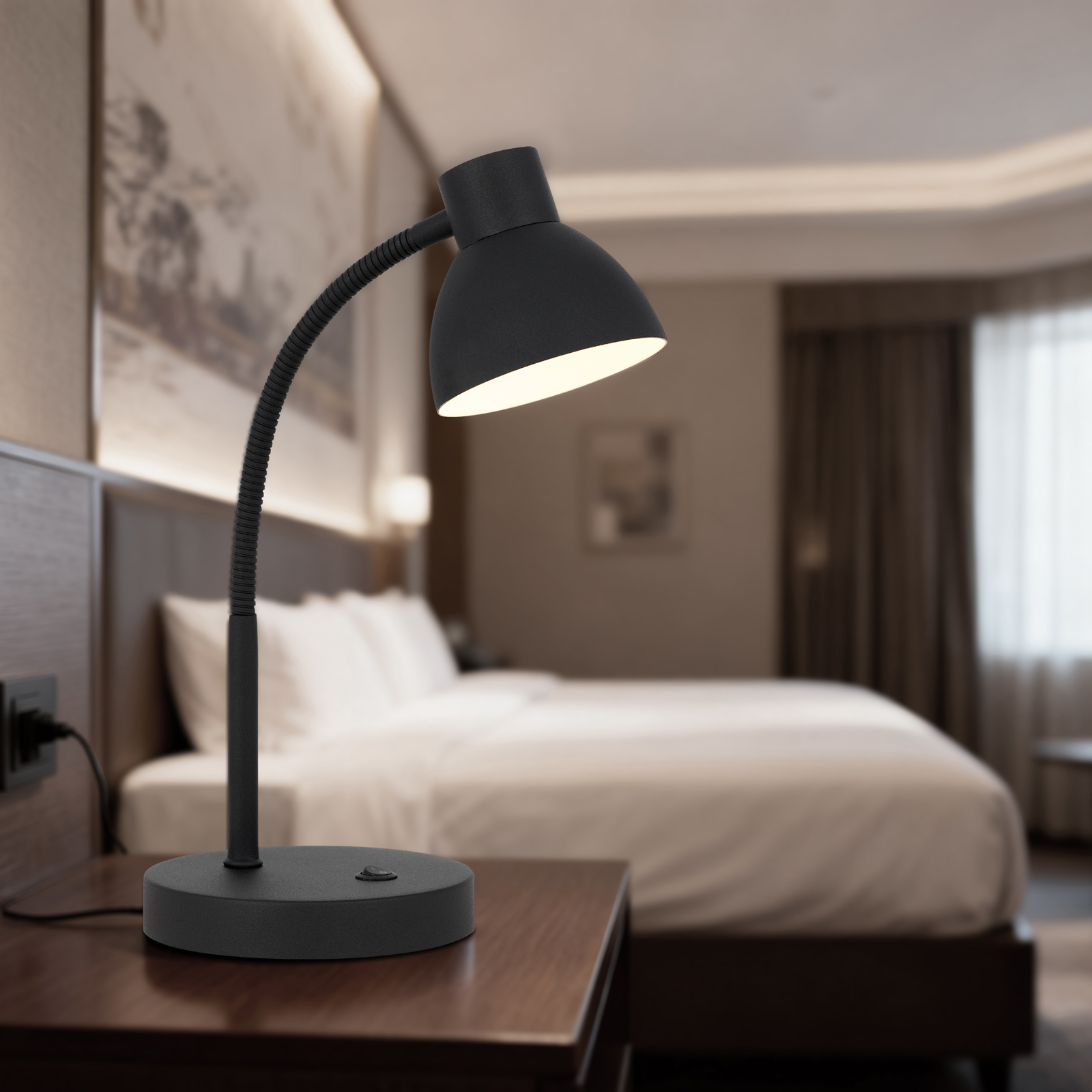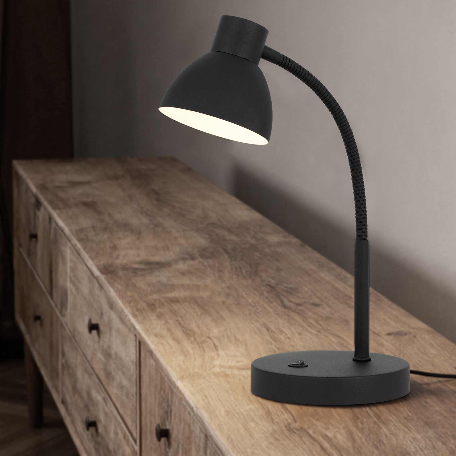 Noirbeam LED 5W gooseneck metal desk lamp, 660 lumen, 3000K
