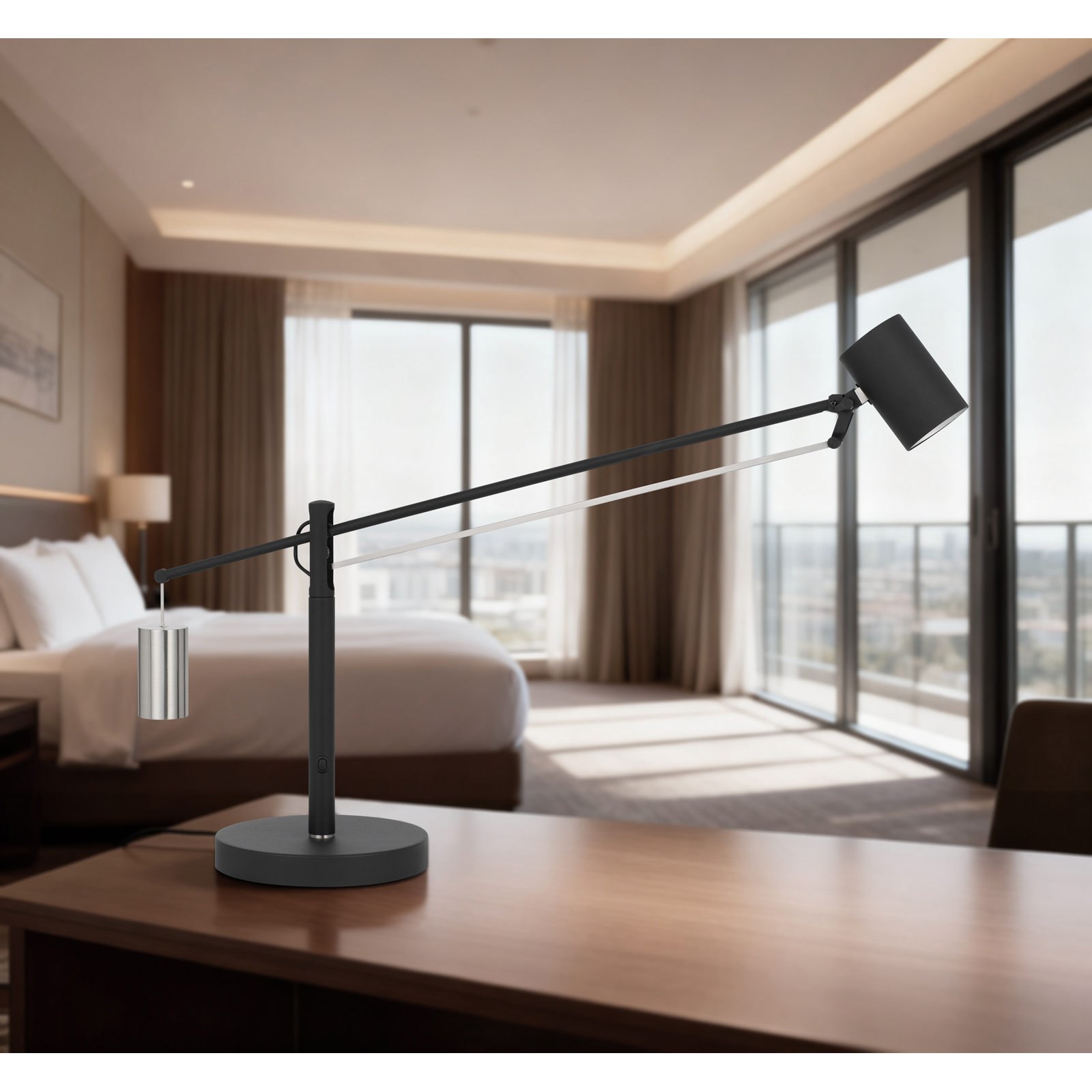 Elevate your space?with this modern, minimalist lamp. Its unique?counterweight?design ensures perfect balance and adjustable lighting. Experience functional art that brightens any interior.